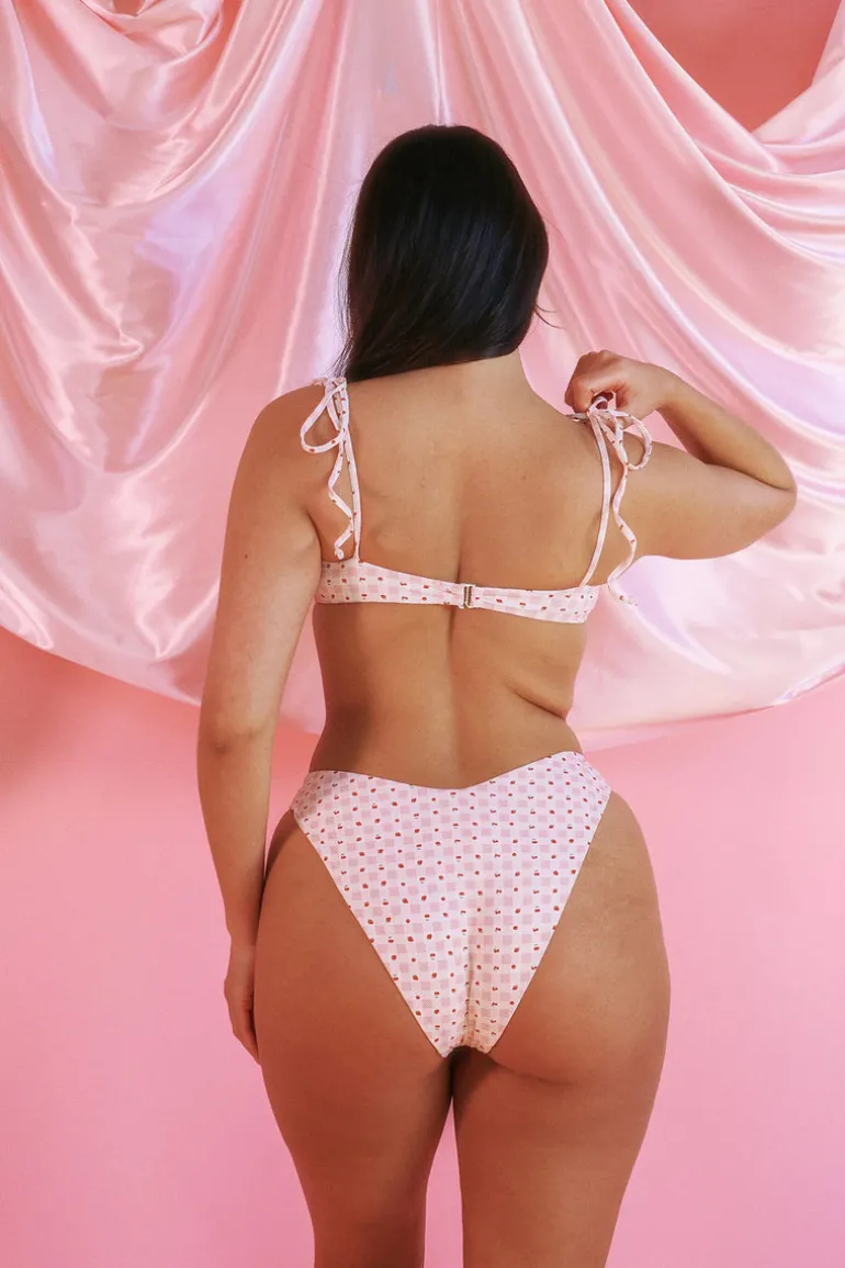 The Feyre Top features a sweetheart neckline, mini bow detail, slender straps and a traditional underwire silhouette. Featuring a back buckle with adjustable straps as well. Pairs perfectly with our Angel Bottoms.