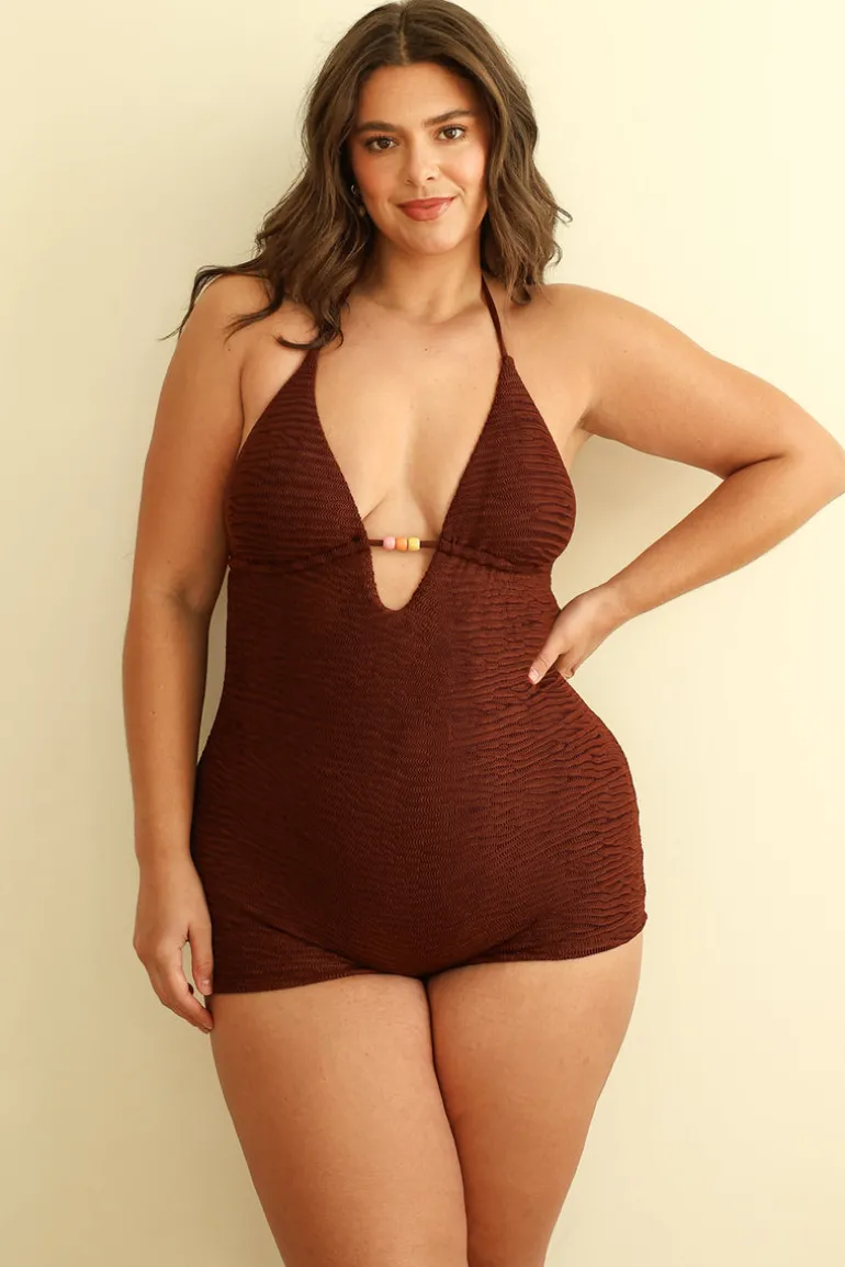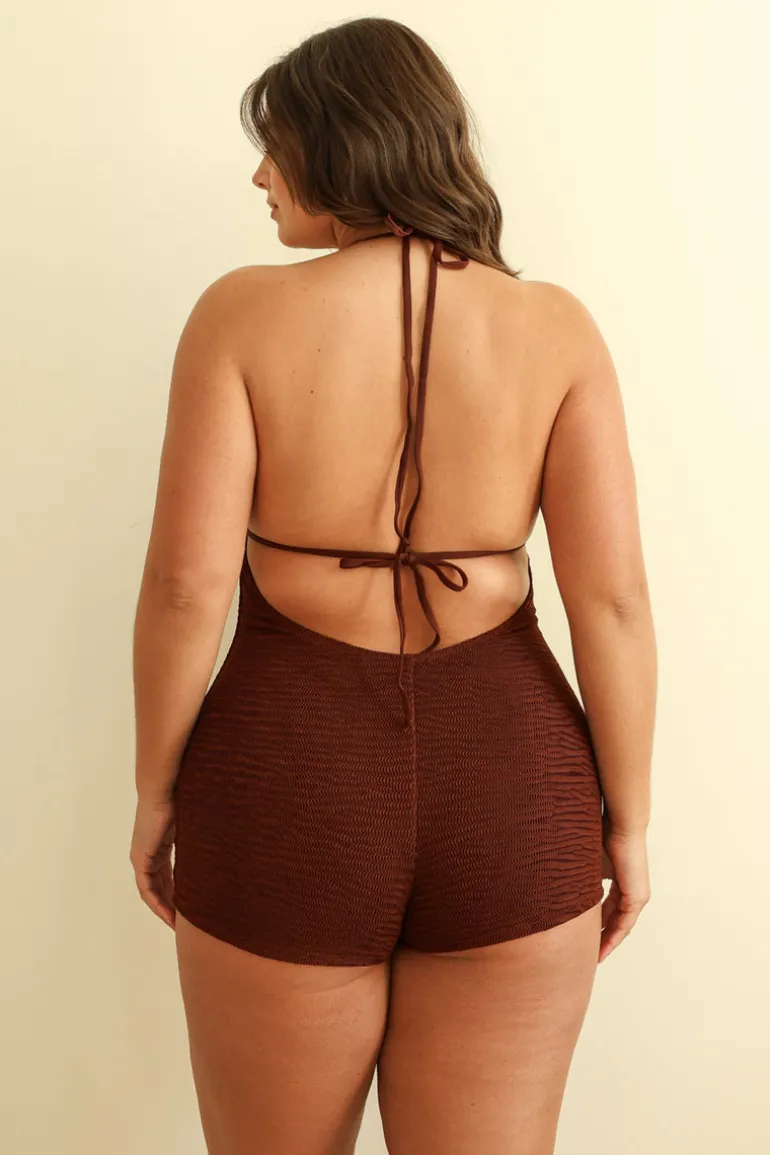 A deep V-neck surfing jumper featuring a sexy open scoop back, adjustable straps and colorful bead details at the center cutout.
