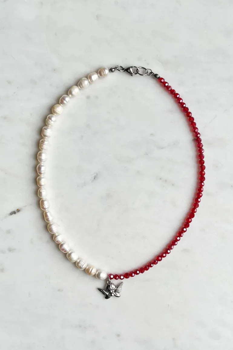 Turn heads with this beautiful Silver Cherub Necklace! Show off the white pearls and red beads embellishing the cherub to express your playful yet divine style. ‘Cuz let’s face it, you’re an angel in disguise!
