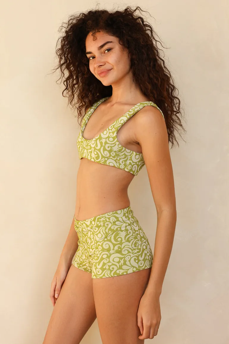 The Farrah Short brings style and comfort without skimping on fun. With its elastic waist and thick, supportive material, these bottoms will be your new beach-day staple. Pairs well with our matching Sofia Top.