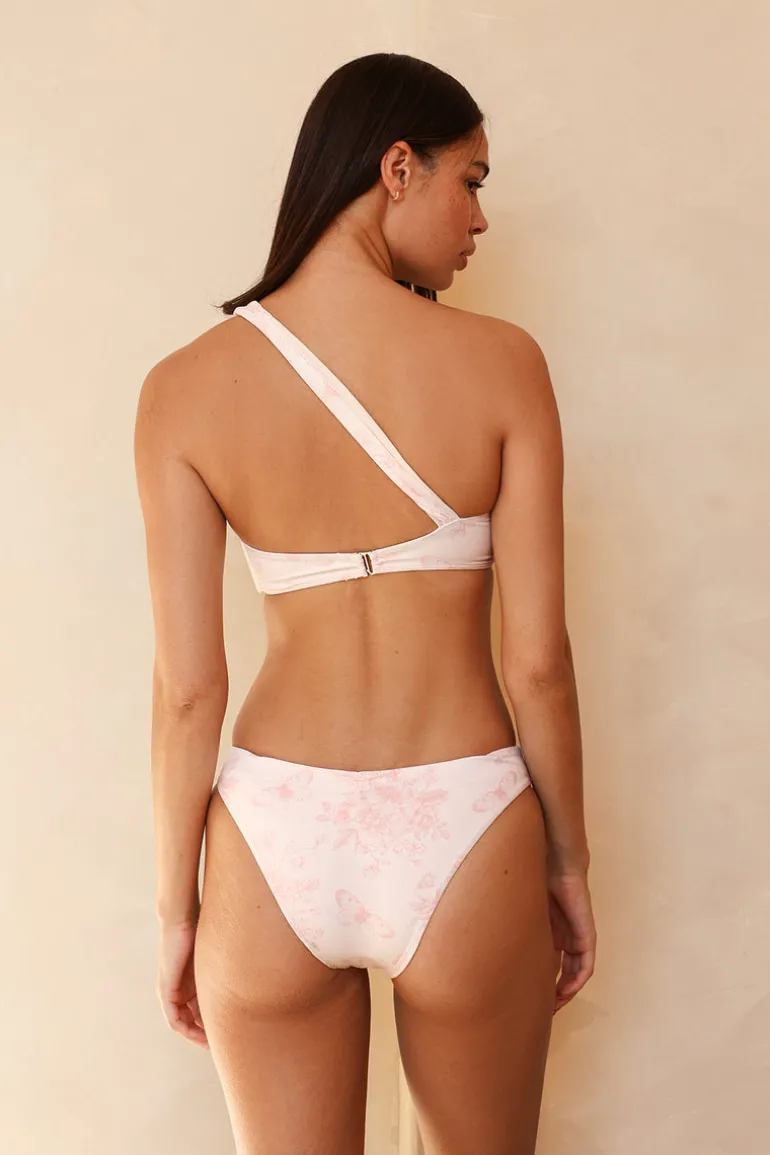Our favorite asymmetrical bandeau-style bikini top that features a playful scrunch design. Pair Frankie with our Palma Bottom for the perfect matching set.