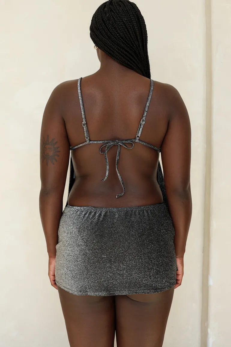 A micro-mini skirt designed to make the perfect swim cover-up or festival fit. Pairs well with our matching Backstage Top.