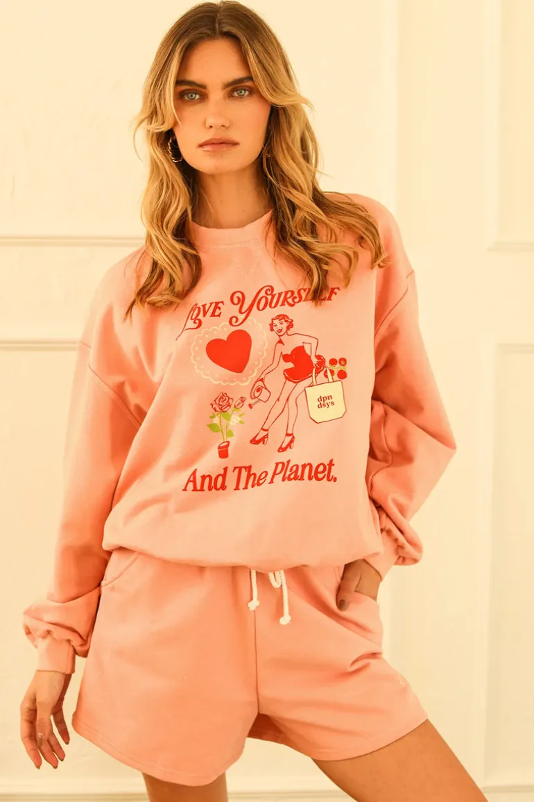 Stay cozy and true to yourself with our Love Yourself Crewneck. Its comfortable fit and cute graphics will keep you feeling confident and happy. Pair it with the Love Yourself Sweatshorts or Sweatpants!