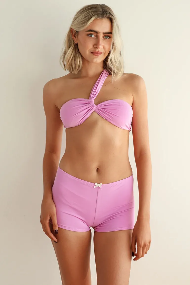 Cheeky swim shorts made with an elastic waist and a cute mini bow detail at the center. These versatile swim shorts will be your new go-to when you want some extra coverage. Pair Luisa with our matching Priscilla Top for a cute, romantic set.