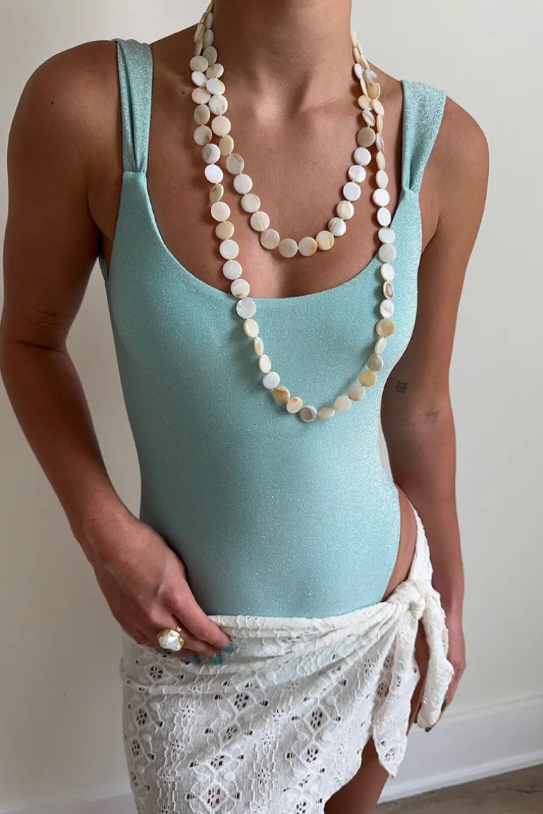 – 76% Recycled Nylon 14% Spandex 10% Silver Lurex