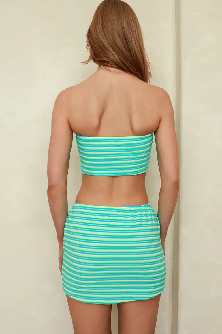 Our new mini cover-up skirt is perfect for all your upcoming sunny vacations. Featuring a cute mini side slit detail and mid-rise waist. Pair with our new Tahoe Top.