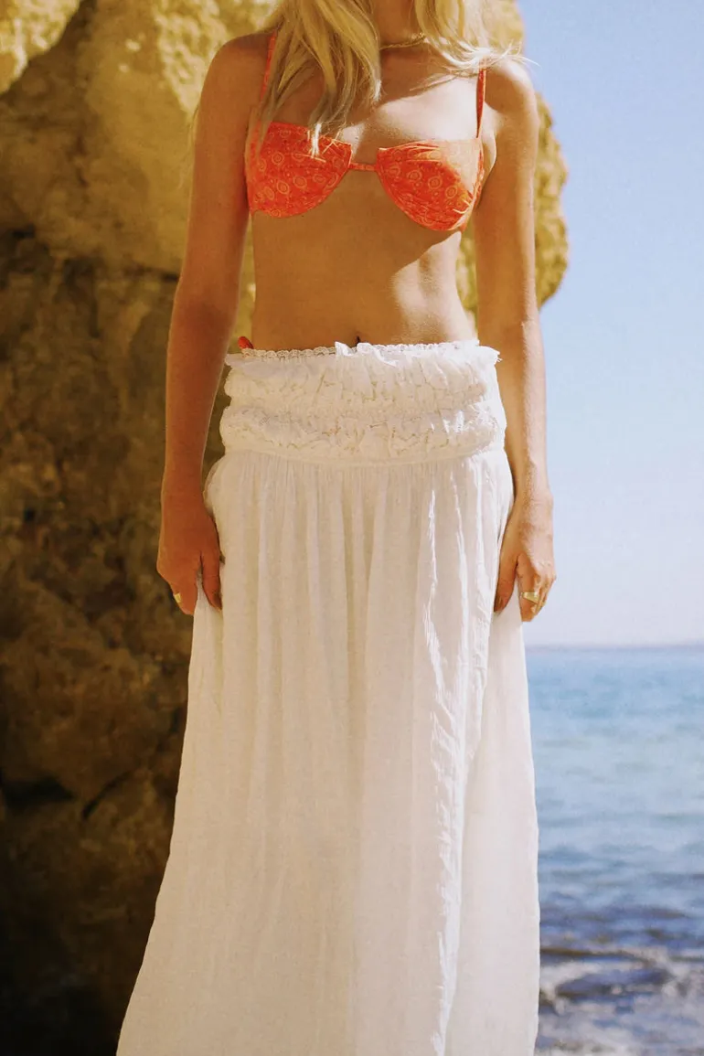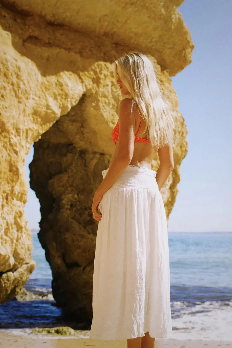 Let your style reflect the moon’s luminous beauty with this flowy white Moonflower Skirt. Perfect for any summer night, this skirt is a light and airy look that will have you glowing!