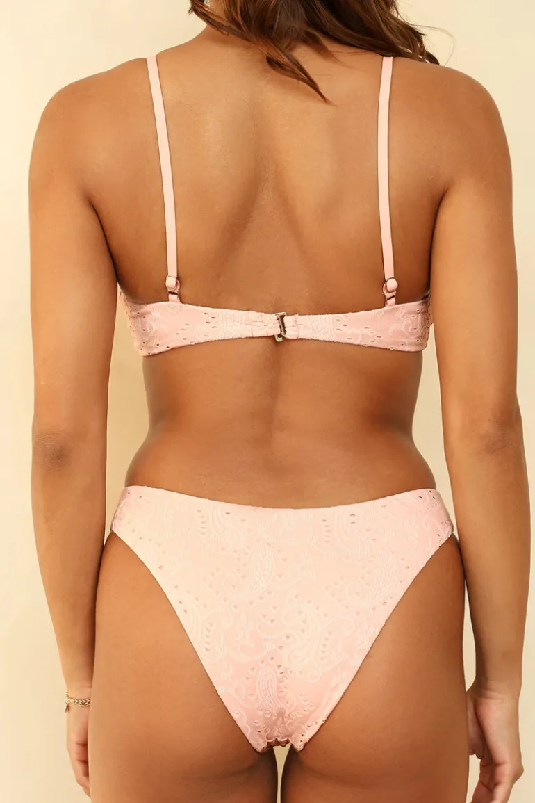 A girly, medium-coverage bikini bottom featuring white lace lining and a matching mini bow at the front. Pairs perfectly with our matching Mary Top.