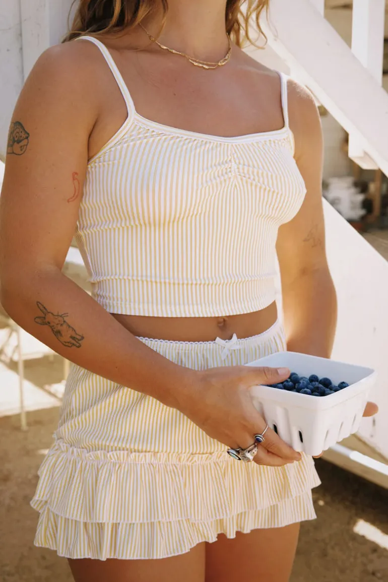 A tiered, low-waist mini skirt made in our comfortable silky rib fabric. This skirt matches perfectly with our Summer Nights Top.