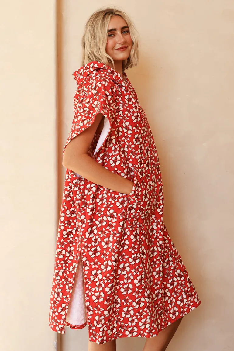 Meet our new Surf Poncho, an innovative changing poncho and towel all in one that is perfect for changing out of your wetsuit or keeping warm après-surf. Embrace the convenience of a quick change anywhere or easily dry off after a long day riding the waves. Made from organic terry cloth and designed in a classic poncho style, this cozy and versatile piece will ensure you can stay on the go and ready for your next adventure.
