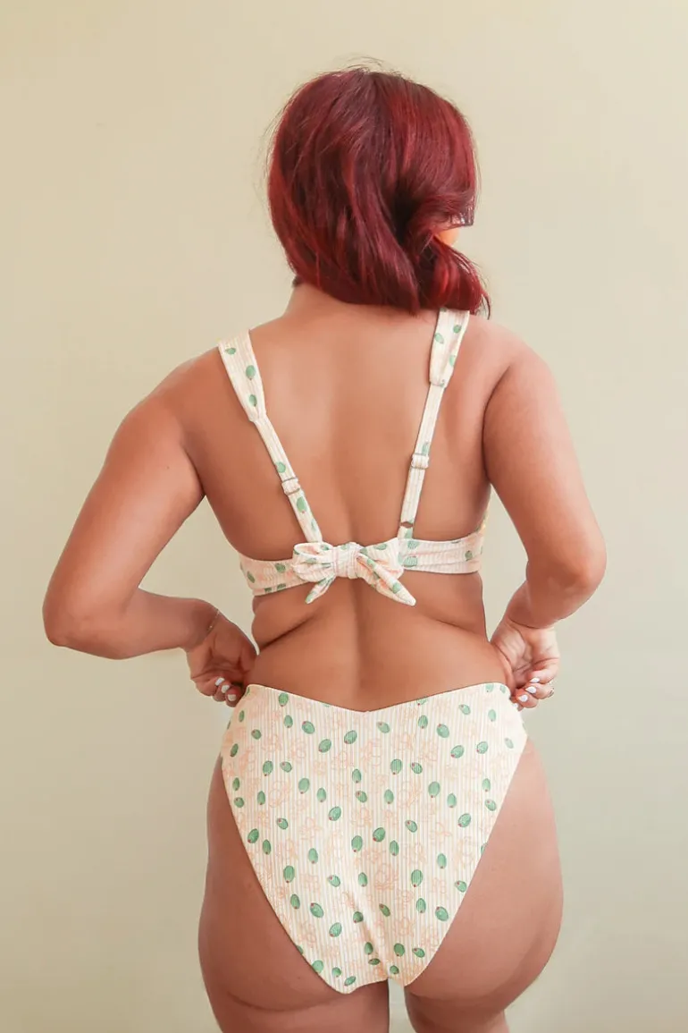 Our new underwire ‘kini featuring tapered straps and a thick band for some steady support. This top’s eye-catching cinching at the center and flattering neckline will make it your favorite addition to your swimmie collection this summer. Pairs well with our matching Angel Bottom or Belle Bottom.